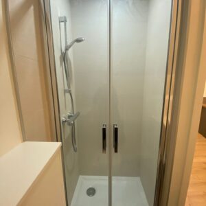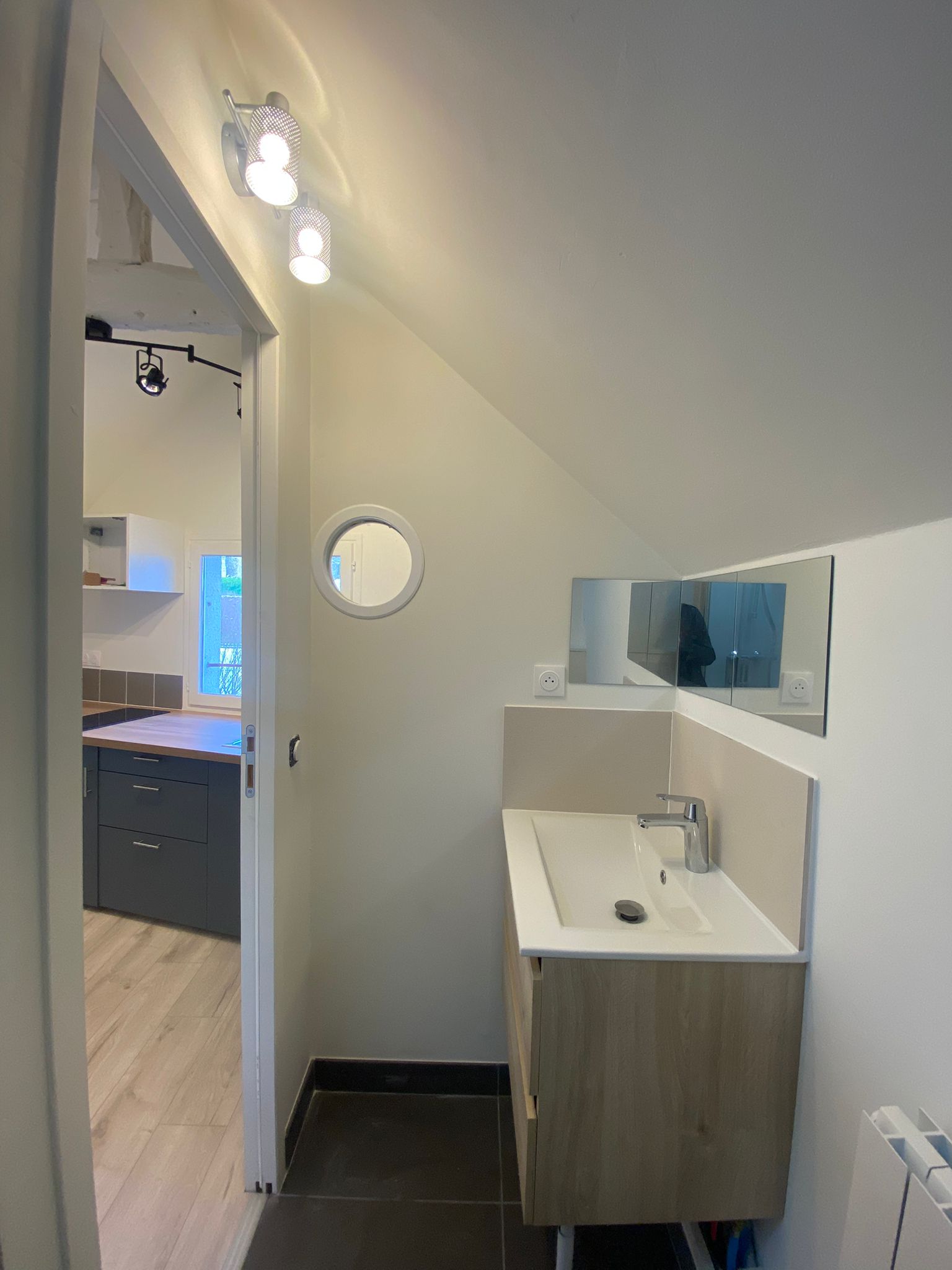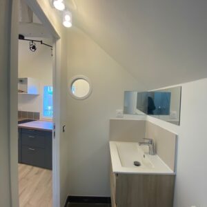 Il comprend une chambre confortable une cuisine équipée moderne et une salle d’eau avec WC ainsi qu’un sèche-serviette