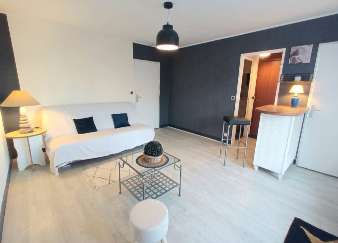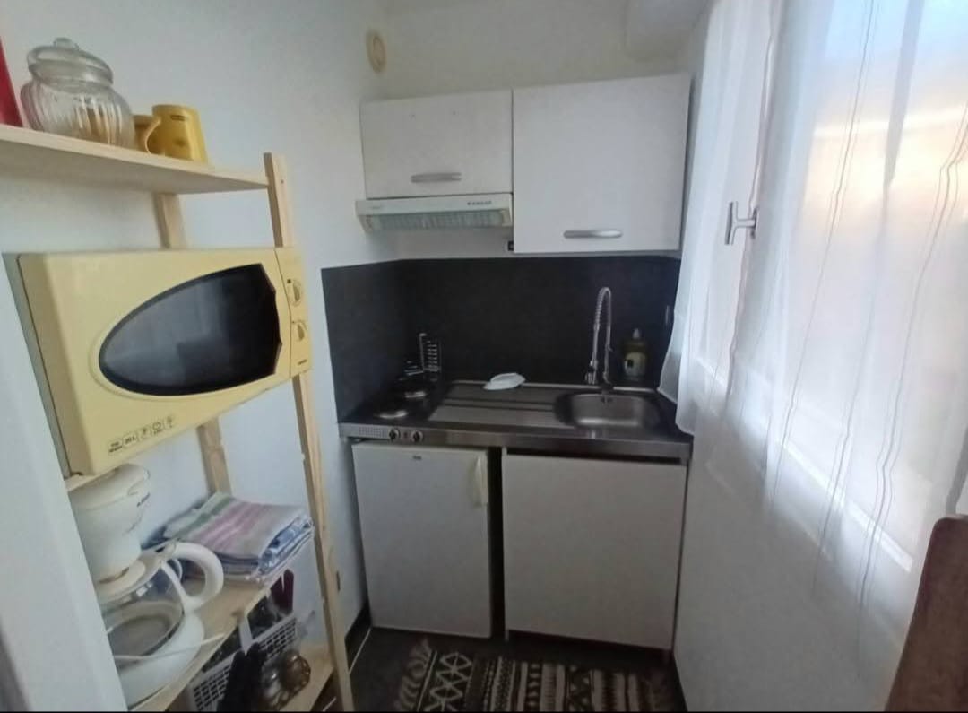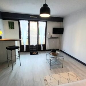 Le logement se compose d’une grande pièce de vie lumineuse équipée d’un canapé clic-clac donnant accès à un balcon, d’une salle de bain, d’une kitchenette équipée ainsi que de nombreux rangements pratiques.