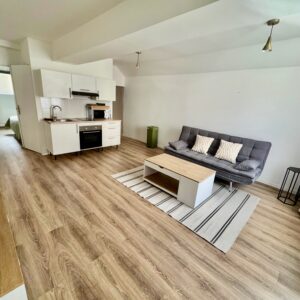 La cuisine contemporaine parfaitement équipée avec réfrigérateur, four, micro-ondes, vaisselle et ustensiles, s’ouvre sur un salon chaleureux et confortable. La chambre dispose d’une literie complète avec draps et serviettes pour un confort immédiat. Vous profiterez également d’une salle d’eau moderne et de WC séparés.