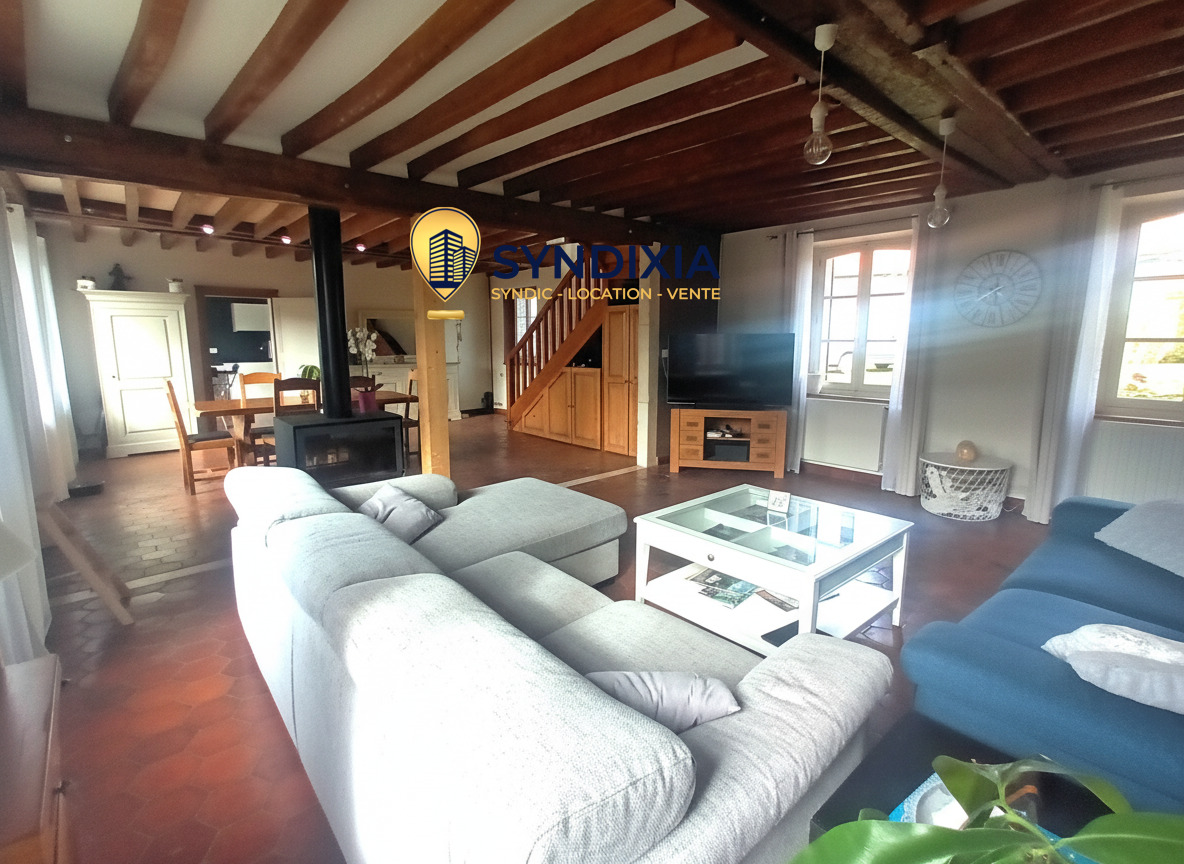 Syndixia Immobilier vous propose cette superbe maison de type longère, nichée dans un environnement calme et agréable, au cœur d’un village disposant de toutes les commodités à proximité.